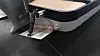 Messen i Tyskland er under rigging, og ingen var til stede på standen der vi fant den oppsiktsvekkende båten. Merkverdigheten er heller ikke merket med navn eller modell.