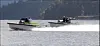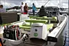 Legg merke til disse to båtene fra Goldfish. Den ene går på en helt vanlig toktakter, mens den som raser forbi går på noe så innovativt som en egenutviklet elektrisk påhengsmotor.