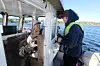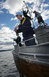 HOVEDBILDE: Henrik kaster bøya som brukes til å trene på å plukke opp garnebøyer med båtshake. Foto: Linn Krogh Hansen.