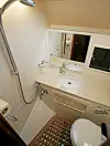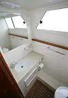 TOALETTET i akterlugaren er komplett utstyrt og romslig.