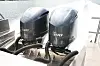 DOBBELT: En av testbåtene var utstyrt med to av Yamahas splitter nye V-6ere på 300 hester. Det ga en toppfart på nærmere 60 knop. Legg merke til den ekstra avstivingen mot akterspeilet. En av mange robuste detaljer.
