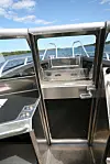 VINDBESKYTTELSE: De kraftige vindskjermene samt en lsbar dr i midten gir god beskyttelse for vinden - også for passasjerer i aktersofaen. Til babord skimtes et stort kartbord.