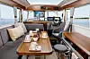 Ved å vende ryggen på den doble passasjerstolen på babord side blir salongen til en stor sosial sittegruppe rundt bordet. Også førerstolen kan vendes, slik at plassen utnyttes maksimalt. På styrbord side i salongen er det blitt plass til en flott bysse med alt av nødvendig utstyr som servant, tre gassbluss, stekeovn og kjøleskap.