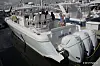Boston Whaler hadde verdensmpremiere på sin hittil største båt, Outrage 42, en aldeles nydelig båt med raffinerte detaljer, i følge Kjelsrud. Den utstilte båten hadde like gjerne fire stk. Mercury Verado på hver 300 hestekrefter på den struttende hekken. Og når den i tillegg var utstyrt med joystick for finmanøvrering, var ingen unnskyldning for ikke å komme pent inn i havna.