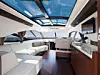 Den U-formede salongen akter er uten tak, og gir en flott sosial sittegruppe her ved nedgangen til den store hydrauliske badeplattforma. Denne er stor nok til oppbevaring av jolle eller scooter. Båten kan leveres med både to og tre lugarer, og prisen starter på i overkant av 7 millioner kroner, i følge Power & Motoryacht som har testet farkosten.
