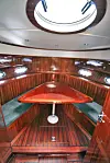 - Deler av innredningen er i finér, men alle skuffefronter og dører er i heltre. Jeg var inne på tanken om å få laget noe hos en produsent av båtinnredninger, meg det ble til at jeg laget alt selv. Da kan du få det akkurat som du vil… Alt utvendig er lameller i fem milimeter mahogni, og bunnen er bygget i tre ganger seks mm finer som er krysslagt og som gir en vanvittig styrke.