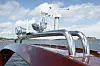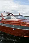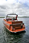 Det var nok en av de største utfordringene. Det å bygge selve skroget var ganske greit, men hvordan jeg skulle sette vannlinjen hadde jeg ikke peiling på. Den måtte settes før skroget var ferdig slik at jeg visste hvor langt ned på skroget jeg skulle legge mahogni. Igjen fikk jeg råd hos broderen. Ifølge han var det to viktige paramtere: Totalvekt på båten og tyngdepunkt. Vekten gjettet jeg til 4,5 tonn. Tyngdepunktet var verre, men lykkeligvis endte motoren opp i akterenden til slutt, og mer flaks enn forstand endte båten opp med en perfekt vannlinje på sjøen, og jeg fikk bekreftet at båten veier 4,5 tonn, humrer Kårfinn.