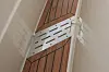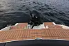 Fra badeplattformen har båten meget gode og brede trinn opp til aktersalongen. Vi savner imidlertid ei oppvippbar pute for å skåne putetrekket fra skitne bein. Forøvrig er putene godt festet, slik at de ikke blafrer i fartsvinden. Du sitter meget godt i salongen, og tykke puter kledd med behagelig vanntett Silvertex-stoff bidrar til godfølelsen for passasjerene.