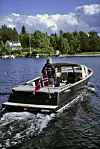 Med en god bæreflate i hekken løfter hun seg lett. Dette er en plattgatter helt uten planingsterskel, skjønt plane og plane. Det gjør hun ikke. Med strak aksel og en 54 hesters Yamaha skal hun mestre 16-17 knop. Vår testbåt maktet i underkant av 13 knop. Her skulle vi åpenbart hatt en propell med større stigning. Toppturtallet med denne Yanmar-motoren skal ligge på rundt 3000 omdreininger. Vår testbåt toppet på 3450 omdreininger.