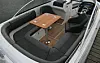 Styrekonsollen gir vindbeskyttelse for to personer. De resterende fire kan plasseres i henholdsvis aktersofa, sidetofte eller foran konsollen. Det er også egne fenderholdere på styrbordsiden ved trappen. Smart, da stuverommene lett fylles opp av fendere. Ellers er dekkslayouten ganske tradisjonell. Men Finnmaster har også fått plass til kalesjegarasje bak aktersalongen. Teak og fast tank er ekstrautstyr.