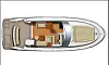 Prestige 39 blir i utgangspunktet levert med to lugarer under dekk, en i forpiggen med dobbeltkøye og en på styrbord side med to enkeltkøyer.