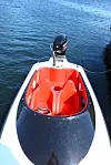 For å gi båten det lille ekstra har den Ferrari-røde farkosten fått fotgass og motortilt på rattet. Fotgassen tar noe tid å venne seg til, men for alle som har kjørt bil er overgangen fra gasspak til pedal relativt enkel. Det er også overraskende enkelt å holde jevnt turtall med den kraftig fjærbelastede fotgassen.