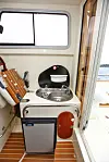 Innvendig er det en stor jobb å gjøre for å få det funksjonelt. Her er det kun ett menneske som kan følge med i hva som skjer utenfor, nemlig rormannen. Resten av besetningen om bord er forvist til kjelleren og vil knapt kunne se ut og i hvert fall ikke følge med på omgivelsene under kjøring. I styrekonsollen er det montert et toalett, men det er av typen trekk-buksa-ned-på-utsiden-og-rygg-sakte-inn og pass på så du ikke skaller i taket. Døren kan du glemme å få igjen, så her sitter du på utstilling. I hvert fall for godt voksne mannfolk.