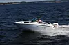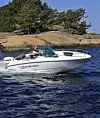 På denne båten kan du henge på motorer fra 75 til 130 hestekrefter. Vår testbåt var utstyrt med en Evinrude E-tec 115 hester. Helt ideelt. Med 115 hester kan du ha med deg både folk og utstyr uten at kjøreopplevelsen påvirkes vesentlig. Alene i båten oppnår du en toppfart tett oppunder 40 knop. Sjøegenskapene er aboslutt sportslige. Båten er trygg og tåler mye juling.