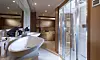 130 foteren er Sunseekers største Predator hittil. Her skal opptil 10 gjester kunne hygge seg, mens et mannskap på åtte passer på at livet om bord ikke blir altfor strabasiøst for gjestene. Eget trimrom, gedigne lugarer, boblebad på toppdekket eller metervis med solsenger er jo heller ikke å forakte. For ikke å snakke om en liten luftetur på den integrerte hydraulisk styrte balkongen i skrogsiden, en løsning som for første gang er tatt i bruk hos Sunseeker.