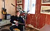EN ARVTAKER: Noah (14) vil bli fisker og musiker. Her tester han ut farfars gitar i musikk-kroken på puben.