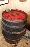 SMØROLJE: – Shell slutta å levere olje på tretønner i 1860, etter det jeg kunne finne ut, sier Trond Eilertsen. Denne veldig gamle tønna har fått si krå i puben.Liv Karin Edvardsen