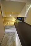 IDEELL: Senterlugaren under salongen har både en stor omkledningsavdeling og en svært innbydende dobbeltkøye med skrogvinduer både i fot- og hodeenden.