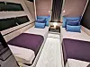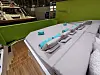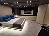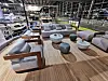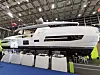 Innvendig er det en svært god romfølelse, selv når båten står inne i en messehall og slipper for det meste kunstlys gjennom vinduene. Stiler er sofistikert italiensk, med en blanding av polert rustfritt stål, gråfarget eik , skinnende svart Marquina-marmor og lyse tepper. Det er som å komme i en annen verden, selv om dette er en av flere båter vi besøker i luksushallen. Denne båten har mannskapslugar, for øvrig plass til mannskap på to, og har i tillegg fire andre lugarer. To store og to mindre. Som alle andre større båter er det her mulig for en kommende eier å skreddersy båten for deres behov. Prislappen ligger på om lag 50 millioner kroner, men sammenlignet med andre båter i tilsvarende prisklasse er dette en båt som skiller seg ut med sitt eget formspråk og design i særklasse.