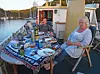 Ons 4/5 Lysekil Har fått en reaksjon etter for mye jobb og hektiske forberedelse før avreisen. Fikk migrene og er helt tom for energi. Trenger en hviledag. Småsover, går turer i Lysekil og pusser rekkestøttene. Finner ikke så mye spennende i byen selv om den har en fint bevart gammel bydel. Kirken som står så høyt at den fungerer som sjømerke både fra nord og sør, er også flott. Havna er mest turistpreget og nesten ingen innbyggere vandrer langs bryggene når sola skinner, slik som er vanlig i mange andre sjøfartsbyer.