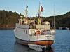 3/5 Lysekil 48 nm . Kraftig regn og haglskurer på morrakvisten. Første dråper på Antares dekk dette året. Hvor finner jeg årets lekasjer? Jo, den første avslørtes raskt. Brødskiva til frokost ble påsmurt med et utrolig utvannet syltetøy. Med andre ord, leksjen befant seg et eller annet sted på styrbord side mellom overbygning og dekk. Tok farvel og fyrte opp motorene, men den rutinemessige kontrollen av motorer avslørte at noen dråper som jeg så i går var mer enn som så. Et oppsamlingsfat jeg plasserte der hadde nå en mer betydelig mengde væske, og jeg så på fargen at det dreide seg om kjølevæske. Det piplet ut fra en 70 mm slange som så litt løen ut. Chr Magnus hjalp til, og han viste meg en båtbutikk på kaia som hadde de nyeste og mest solide slangeklemmer. Klemmene ble byttet, men å bytte slange er en større jobb ettersom kjølevæske må tappes ned, så jeg avventer og observerer i første omgang (retter inn mitt nyanskaffede motor-overvåkingskamera og har dermed litt kontroll gjennom et videobilde som hentes opp i hjørnet av kartplotteren). Hadde en fin tur på flatt vann og tok kvelden i den fine gjestehavna i Lysekil.