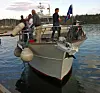 Seilasen gikk på blankt hav over grensa og inn til Strømstad, hvor Gro og Chr Magnus tok i mot på brygga rett akter av deres 68 fots yacht Zanzibar. De lever ombord det meste av året. Det er godt å møte gode venner fra Norsk motorskøyteklubb og kunne spise sammen og juge utover kvelden! (tredje dagen på rad!)