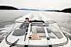 Båtliv fikk som første båtblad prøvekjøre C62 Cruiser, men på vår timelange tur ble det ikke anledning til å teste modellen fullt ut. Kun da dønningene fra en ferge nådde oss fikk vi sjekket om båten tåler litt bølger – og den testen besto C62 Cruiser uten å nøle. Styringen var ikke innkjørt og føltes litt stiv, men modellen var ellers svært lettkjørt og retningsstabil. Suzukimotoren på 115 hestekrefter ga ikke båten oppsiktsvekkende fartsressurser, men føltes desto mer sivilisert. Vi klokket inn vel 32,5 knop på toppfart, og med en 150-hester anslår Askeladden at båten vil levere ti knop ekstra. Det var trekkfritt ved forsetene helt opp til full fart. Også i halvstående kjørestilling, med sitteputen vippet opp var det minimalt med trekk, og førersetet kan justeres både i høyden og horisontalt. Det kommer godt med, for det er lite benplass når stolen kjøres frem. Vi hadde også ønsket oss vinklede fotplater, men noterer et stort pluss for den mørke, refleksfrie styrekonsollen, vindusviskeren og Suzukis lettleste instrumenter. Det er satt av plass til en stor kartplotter midt i siktretningen.
