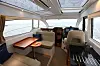TRADISJONELL: Salongen er tradisjonell, men med noen finesser og rikelig med lys. Skinntrukken håndrekke i taket tyder på at det er båtfolk som har utviklet båten.