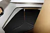 Båten har et stort akterdekk med dobbel sofa som kan skyves om til en sittegruppe med bord i mellom. Det er mye stuveplass under dørken.