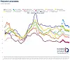 PRISER: Den oransje kurven viser utviklingen i polyesterprisene i Europa.
