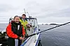 Vi er godt kledd for en dag på sjøen. Det er lett regnvær og overskyet når Gunn Kolstø (32) og Sverre Førland (57) stuer fiskeutstyret inn i båten. Båtliv er invitert til å være med disse to medlemmene av Haugesund Havfiskeklubb. Vi skal ut til fiskeplasser ute i havet utenfor Haugesund og fiske i midten av april. Spesielt kaldt er det ikke, og nesten vindstille.
