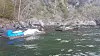 På vei sørover til Blylaget oppdaget vi et vrak av det som en gang hadde vært en fin snekke. Kun overbygget med påsatt kalesje stakk opp av vannet.