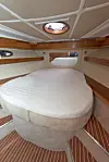 HOVEDLUGAR: Hovedlugaren har en god dobbeltkøye med Jensen-overmadrass. Det er vanntank under sengen. Ellers er det rikelig med skapplass. Begge lugarer har lamper med LED.Trond J. Hansen