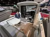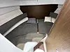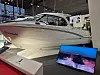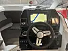 Båten virker lys og luftig med luke i taket både over salongen og over kabinen nede. Det sorte dashbordet ser moderne og stilig ut. Utstilt båt er utstyrt med 250 hk Suzuki på hekken. Rundt motoren er det badeplattform med luke inn til akterdekket med U-sofa og nedfellbart salongbord. Her er det god plass til en familie på fire-fem, og hele salongen kan omgjøres til en stor solseng mellom måltidene. Også på fordekket er det en bred solseng.
