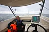 Den som reiser opplever mye mer enn den som bare sitter stille. I dag skulle vi krysse fylkesgrensen mellom Sør-Trøndelag og Møre. Først skulle vi bare sjekke et rykte om at tyske ubåter hadde gjemt seg i en liten vik på ”yttersida” av Hitra. Deler av Båtlivs mannskap var sporty nok til å starte dagen i dykkerdrakt. I går kveld hadde vi fått høre lokalt sladder om at tyskerne skulle ha hatt en mini ubåtbase ikke langt fra Melandsjø brygge. Det fantes ikke lenger spor etter det tredje rike på land, men e av mannskapet på turen mente det burde kunne finnes spor under vann. Etter en halv time under vann, dukket de opp med et nett fullt av skatter. Var det noe tegn til tyske etterladenskaper? Alle hang over fangstnettet, og hver liten bit som ble plukket opp ble nøye gransket. Det var så som så med de marinearkeologisk bakgrunnskunnskapene, men hva gjør vel det når man finner beinrester som ”kanskje” kunne stamme fra en pirat eller en ” tysker” for den del. Gammel keramikk og mange biter av tykt porselen. Til slutt konkluderte vi med at det måtte nok brukes mer tid på ”graving” før vi kunne konkludere med at vandrehistoriene som ble overlevert oss på restauranten kvelden før stemte. Men, det får bli en annen gang. Nå skulle vi besøke Kvennvær, et sted hvor vi garantert skulle finne mange tyskere. Levende sådan, med fred i blikket og fiskestang i hånden.