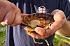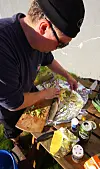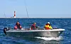 Apropos middag. Selv hadde vi bestemt oss for å gjøre det samme som sunnmøringene. Maten skulle være blodfersk og skaffet til veie av oss selv. Vel fremme på Vingleia delte vi oss opp i tre arbeidslag. Damene skulle tradisjonen tro stå for husarbeidet og de hjemlige forberedelser. To av oss gutta dro ut for å fiske med harpe. De to andre skulle trekke i dykkerdrakt for å finne kamskjell og krabbe. Etter en time skulle vi møtes på brygga for å gjøre opp status. Alternativet var det ingen som orket å tenke på der og da. Status ble som følger. Fem store krabber. Ett kamskjell (noe magert, når vi vet at dette er et av verdens beste kamskjellområder). En hyse på 2,5 kilo og en småsei. Det ble et uforglemmelig måltid tilberedt over grillen og med noe hjelp fra meieriene, en pakke bacon og sitron og purreløk. Hmmmmmm!