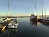 Så bar det utover i plan. Kåre pløyde en grå fure i den metallblå flaten vi beveget oss over på vei til Vollen. Der er det helårshavn, og en del båter lå fortsatt ute, mens hagene og åkerlappene rundt Vollen var drapert hvite av frosten. Ved Vollen Slipp tok vi farvel med Kåre for i år. Ikke uten vemod, for nå er sjøen og skjærgården på sitt vakreste.