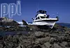 Hovedbildet viser Class 1 motorbåten “Co.Ge.Me-ITECO” som traff en grunne ved Guernsey under British Grand-Prix og som ble stående høyt og tørt når tidevannet gikk ut.