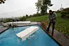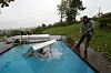 Spent fast i en sekspunkt sikkerhetssele, i en stollignende innretning, er det bare å vente på overraskelsen, og den kommer. Plutselig rykkes du rundt, og verden er plutselig fiskenes og ikke din, og du har hodet ned og ræva opp. Når du ligger sånn, og bare har dine egne lunger å stole på, begynner prosessen med å komme seg fri, sakte men sikkert dra seg ut gjennom et firkantig høl. Alt foregår mens du samtidig skal tenke på å holde hendene over hodet for å eventuelt ikke hekte i vrakrester eller skadet karosseri. Greit nok i teorien, men det skal litt til å tenke opp ned mens øynene er nesten blindet av det sterke klorvannet. Og når du endelig er fri og gjennom den «trange luka» må du se etter lyset og overflaten. Det blir litt som å klatre i fjell, jo mer høydeskrekk, jo stoltere blir man når det mestres.