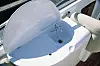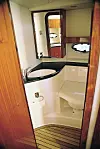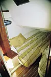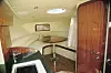 Styreposisjonen er ren og ryddig, men ikke helt vellykket. Styrestolen kan ikke justeres, bryterpanelet er skjult bak håndtaket og lyse flater gir litt gjenskinn i frontruten. Gode teaktrinn fører frem til fordekket.