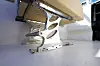 PENE DETALJER: Stolene har Romberg tegnet selv. Stilig, men vi skjønte ikke helt funksjonen til benstøttene, som var gjemt i bakkant av stolene.