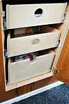 ROBUST: Skuffer av kraftig kryssfiner er montert på grove glideskinner. Ikke elegant, men solid.