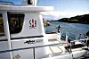 Regnet lager små elveleier på ruteglasset på vår høstferierende Minor 25. Båtturer kan godt være ruskete så lenge styrehuset gir godt med ly, og kaffen er gloheit i hånda.