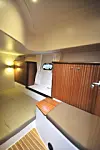 Soveplass: Senterlugaren har egen inngangsdør, en fin liten sitte-benk og en rommelig dobbeltkøye.