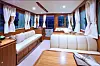 TEAK I LANGE BANER: Snekkerarbeidene er flotte, selv om langbenken på styrbord side i grunnen ikke er så veldig funksjonell. En vanlig U-sofa er å foretrekke. FOTO: Clipper