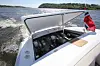 På få minutter kan den åpne og solvennlige båten lukkes helt med en nyutviklet kabriolet patent. Andre vil vel si kalesje, men på denne båten er dette mer avansert enn som så. Du slipper helt å kneppe. Her flyter kabrioleten på skinner, og klemmes fast med hurtigklemmer fra innsiden. Den bakre delen kan holdes åpen, samtidig som man kan ta bort deler av stofftaket over førerplassen for å gi både luft og utsyn for båtføreren og de andre om bord.