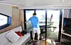 HOVEDDEKKET: Innvendig er det to store sittegrupper, en av dem dedikert til flatskjermen og en velutstyrt bysse preger hoveddekket.