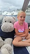 I Arendal møtte jeg nemlig enda en hyggelig båtfamilie, som inviterte meg med på tur – familien Ourdahl. Nå koser jeg meg sammen med Saga, Rune og Kirsti, som sier at de gleder seg til å bli bedre kjent med meg!