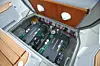 MEGET RYDDIG: De tekniske installasjonene er samvitthetsfullt utført i 33-foteren, men det uungåelig at det blir litt trant med to motorer. Legg merke til den smarte oppbevaringen av bordet til akterdekket.Atle Knutsen