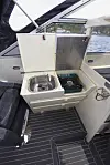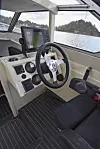 Båten vi har testet er fra 1985, men er pusset opp av en båtbygger. Den har nylakkert skrog og dekk, og har fått ny primer og nytt bunnstoff. Der sydd helt ny kalesje til den, og samtlige puter og stoler er nye trukket med nirox-stoff. Den innvendige dørken har fått nytt, grått laminat med nater. Teknisk er båten også oppgradert fullstendig med ny trykkvannspumpe og vanntank, det elektriske er fornyet og båten har også fått installert baugpropell, ny ankervinsj akter og stereoanlegg med Bluetooth. Faktisk er kartplotteren, en stor Garmin GPSmap 820, eldst av alt utstyret. Den var ny i 2017. Videre finnes det propandrevet kokeapparat om bord. Den eldre, men tidsriktige Yamaha PRO-V totakteren er montert i forbindelse med renoveringen. Fremfor alt har testbåten fått Seastar hydraulisk styring – noe som løfter kjøreopplevelsen vesentlig.